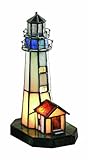 LN-1603 Features: -Emerald/ivory/blue Tiffany glass lighthouse.-On/Off in-line cord switch. Includes: -7W incandescent B type bulb included. Dimensions: -Overall dimensions: 10.5'' H X 6'' L x 4.5''.