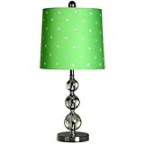 L21218DS Shade Color: Green Features: -Materials: Crystal and Steel.-With matching finial on round brushed steel base.-Hardback fabric on styrene shade.-Clear cord.-Shade with white polka dots.-Wipe clean with soft cloth. Includes: -Rotary switch takes 60W bulb (included). Dimensions: -Shade dimensions: 9" H x 9" W x 10" D.